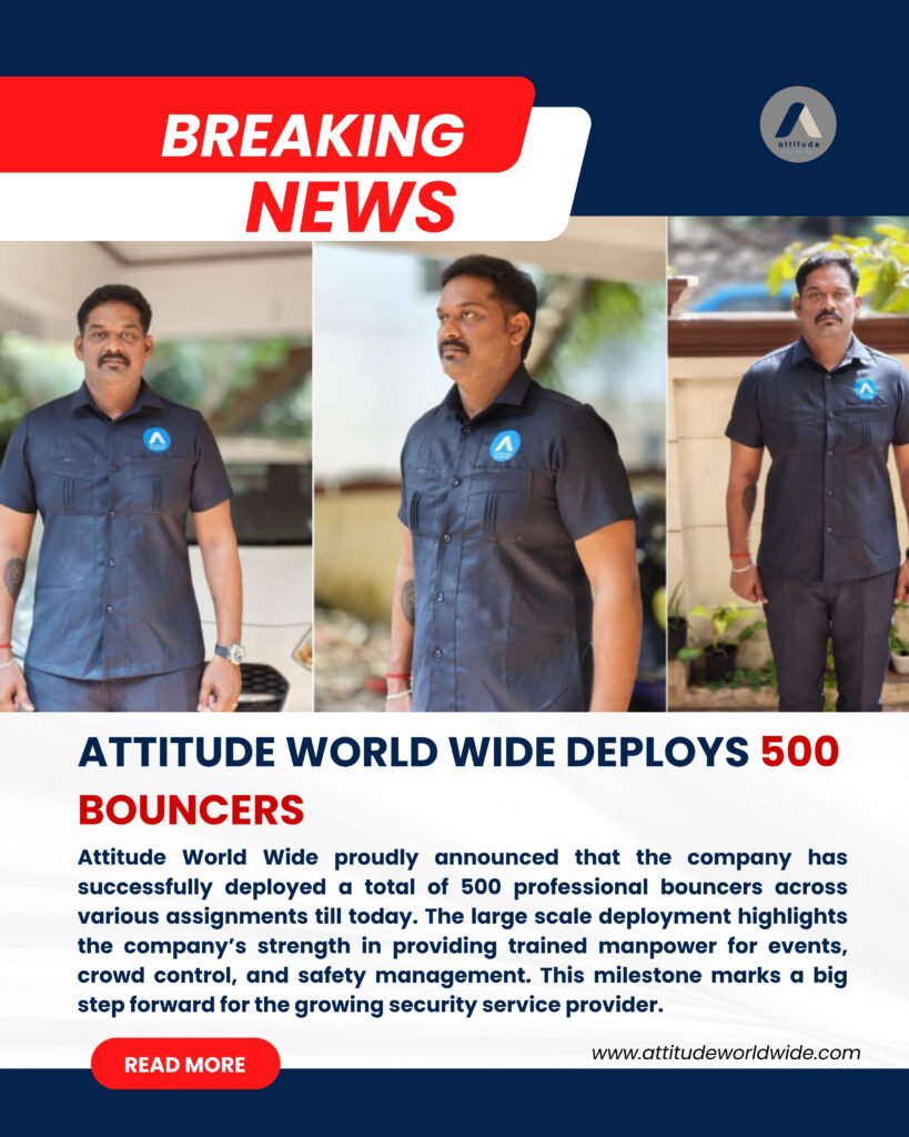 The successful deployment of 500 professional bouncers marks a major achievement for Attitude World Wide. It reflects the company’s commitment to excellence, safety, and professional manpower services. As security needs continue to grow, Attitude World Wide stands ready to provide reliable, trained, and efficient security teams for every assignment.